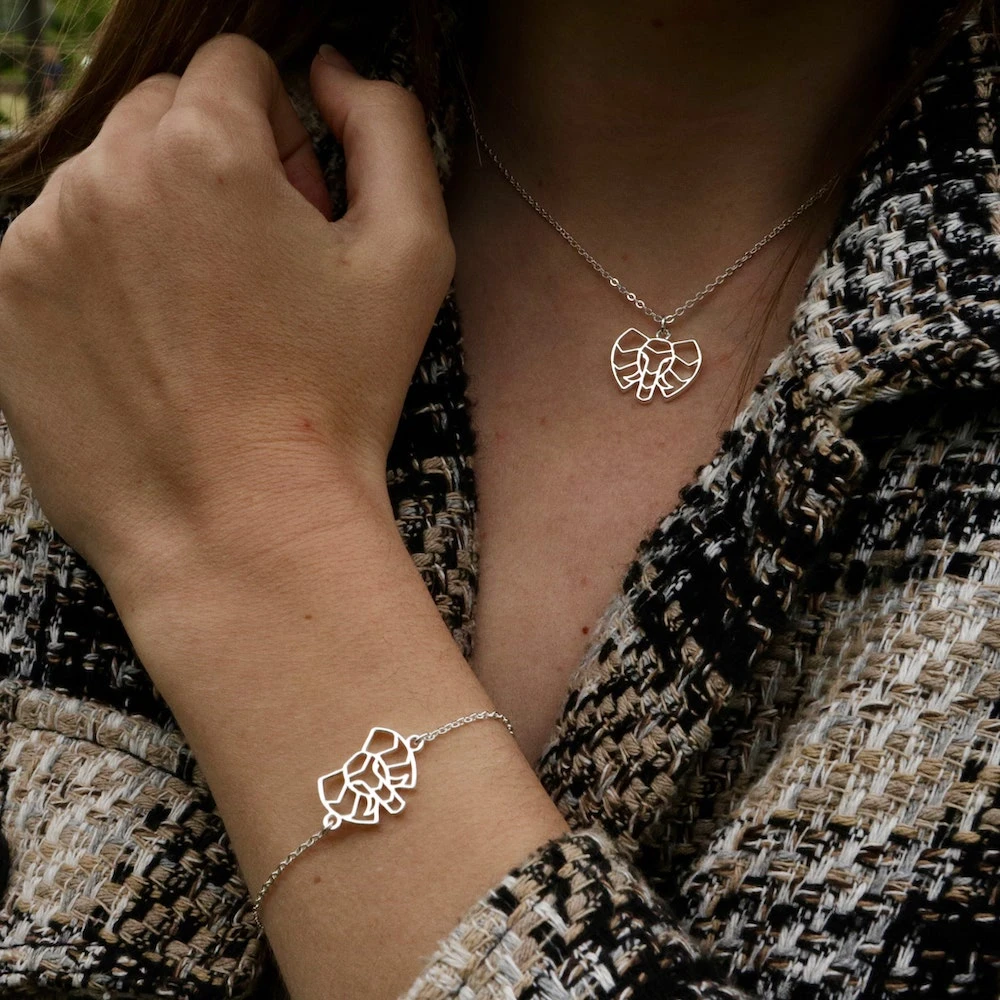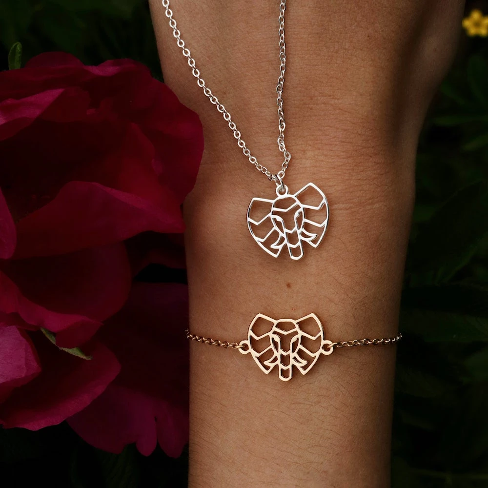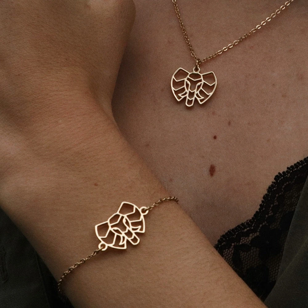 - Bijou animal totem en collier et bracelet assortis, disponibles en plaqué argent vernis ou étain doré à l’or fin
