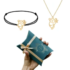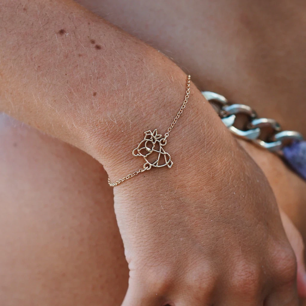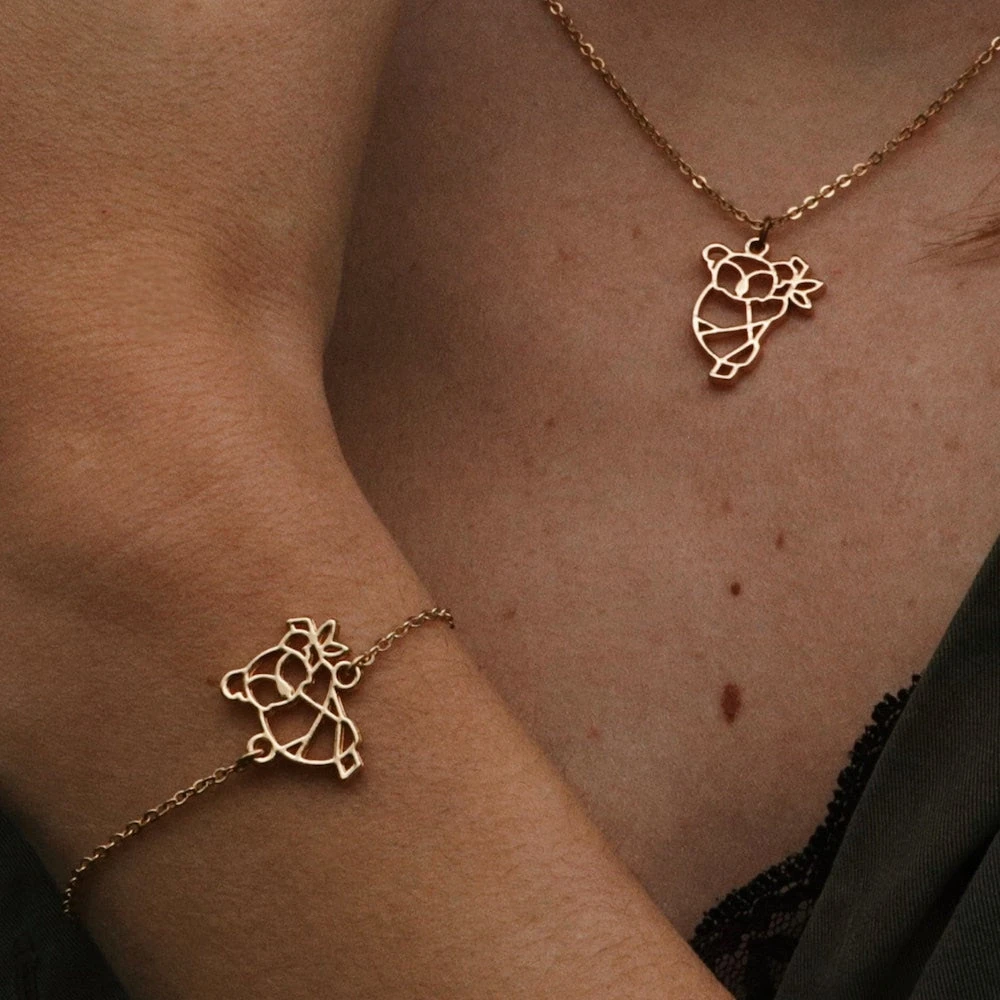 - Bijou animal totem en duo pendentif et bracelet, proposรฉs en plaquรฉ argent vernis ou รฉtain dorรฉ ร lโor fin
