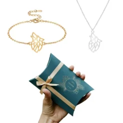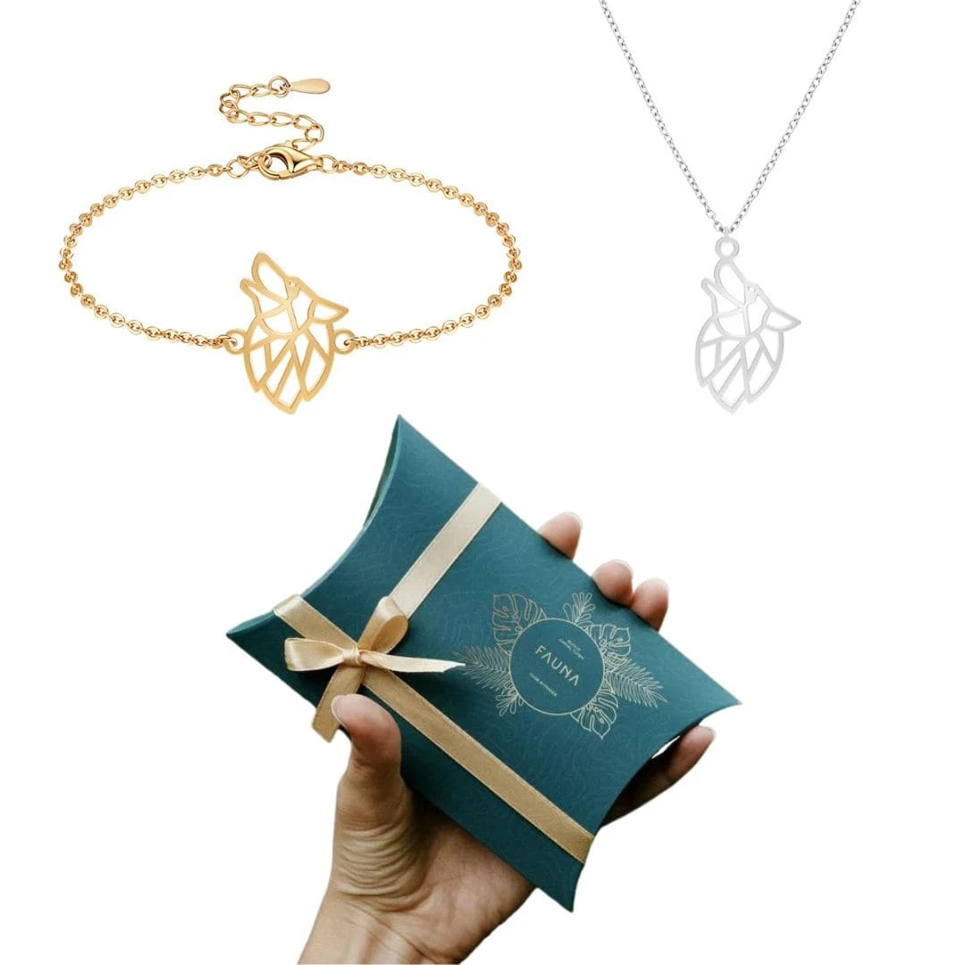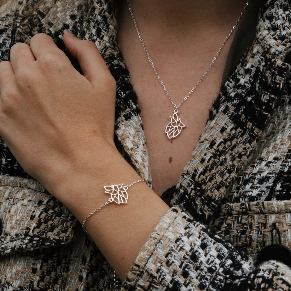 - Bijou animal totem en duo collier et bracelet, disponibles en plaqué argent vernis ou étain doré à l’or fin