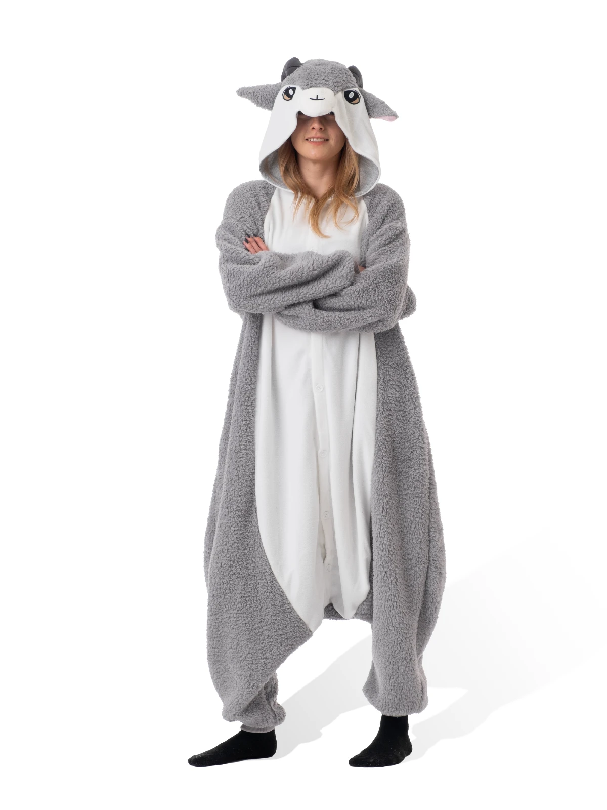 - Detailed Goat face hood complete with ears, horns and adorable eyes