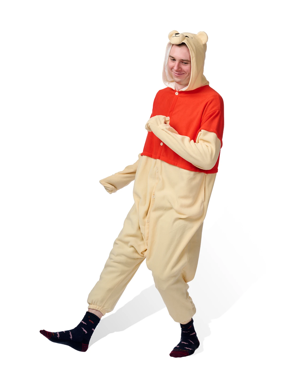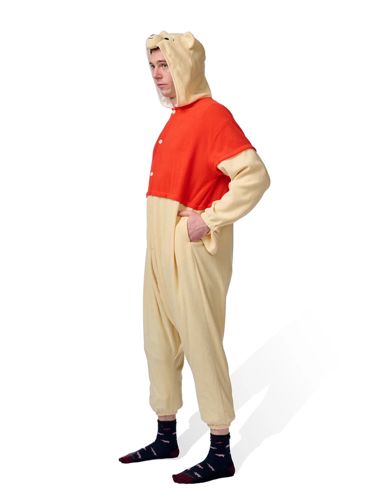 Bring a little honey-sweet charm to your wardrobe with our Pooh Kigurumi! Featuring a cheerful yellow and red design, this onesie channels the lovable bearโs cuddly spirit. Perfect for lazy days or playful adventures, itโs as comforting as a pot of honey.